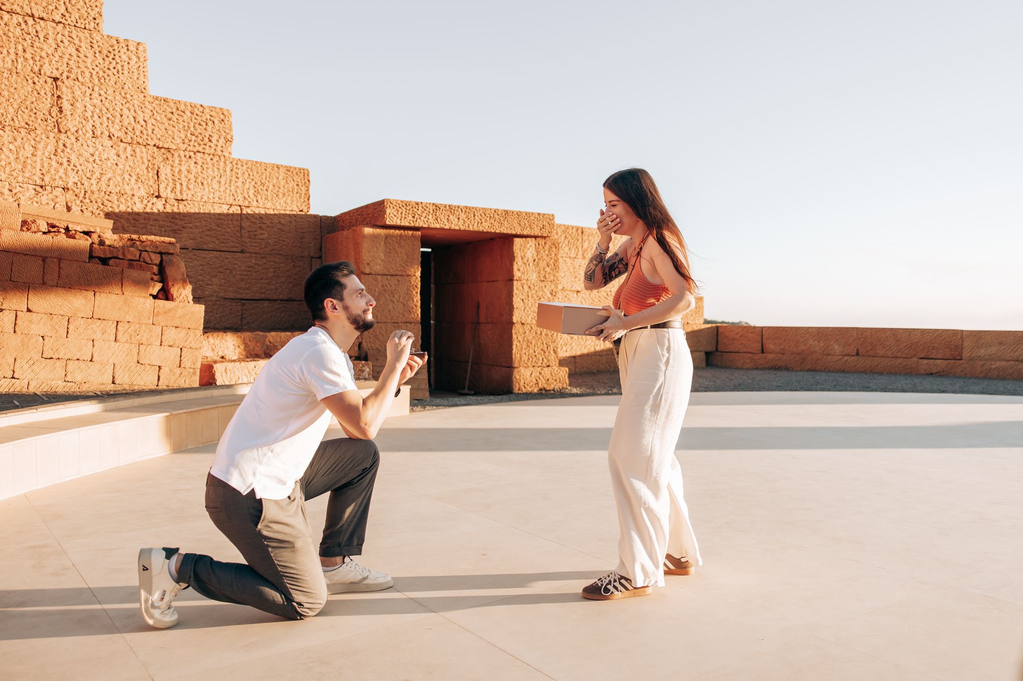Lo stupore di Stefania, la gioia luminosa della figlia, l’emozione che prende forma tra mani che si cercano. E poi quel gesto che cambia tutto: Giovanni si è inginocchiato, lasciando parlare il cuore. Tra le geometrie del Teatro di Andromeda e l’orizzonte infinito della Sicilia, è nato un nuovo capitolo della loro storia. Raccontare una proposta di matrimonio in Sicilia significa custodire la verità dell’amore: discreta, potente, irripetibile.